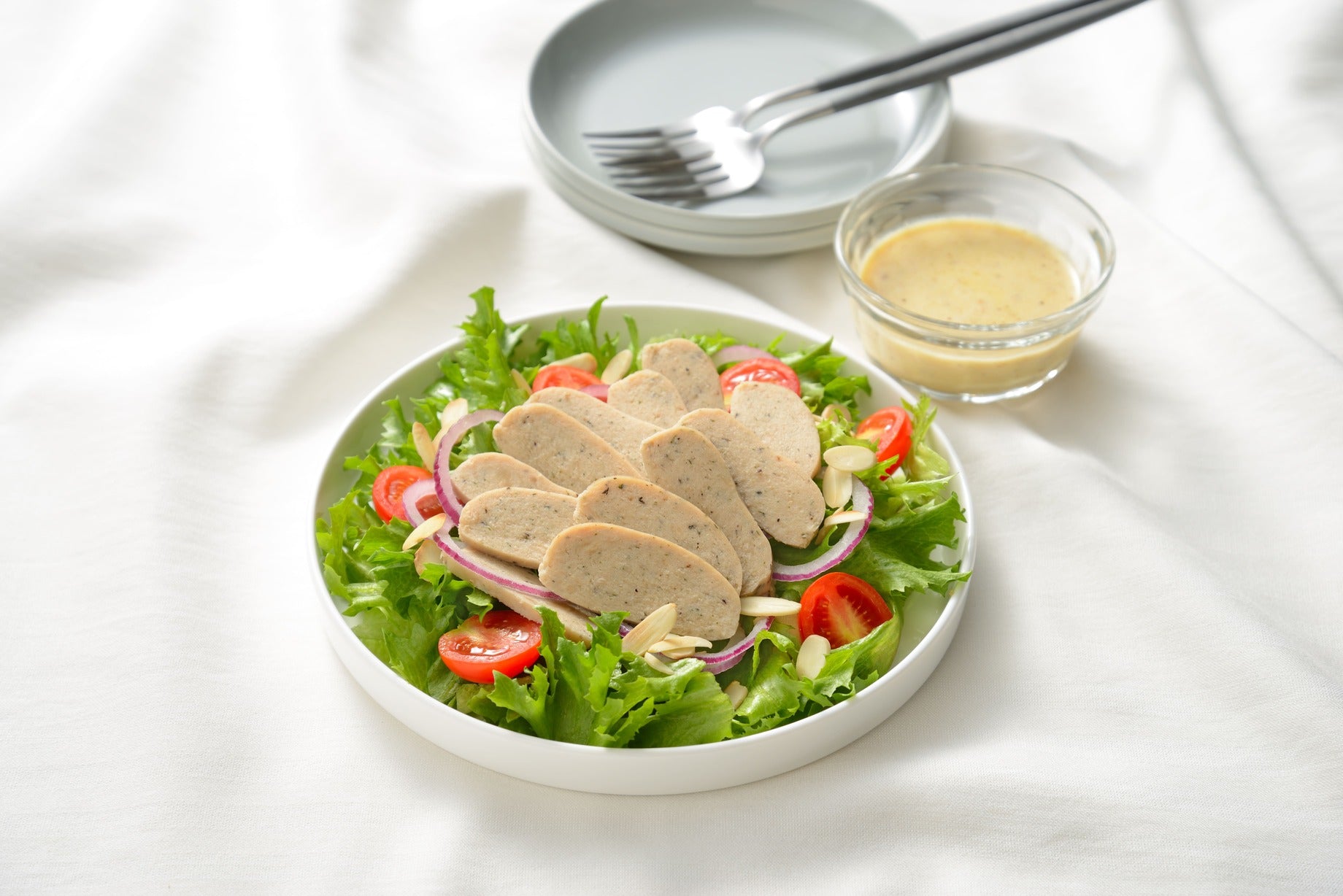 グリーンチキンと合わせる事で植物性シーザーサラダの出来上がり。