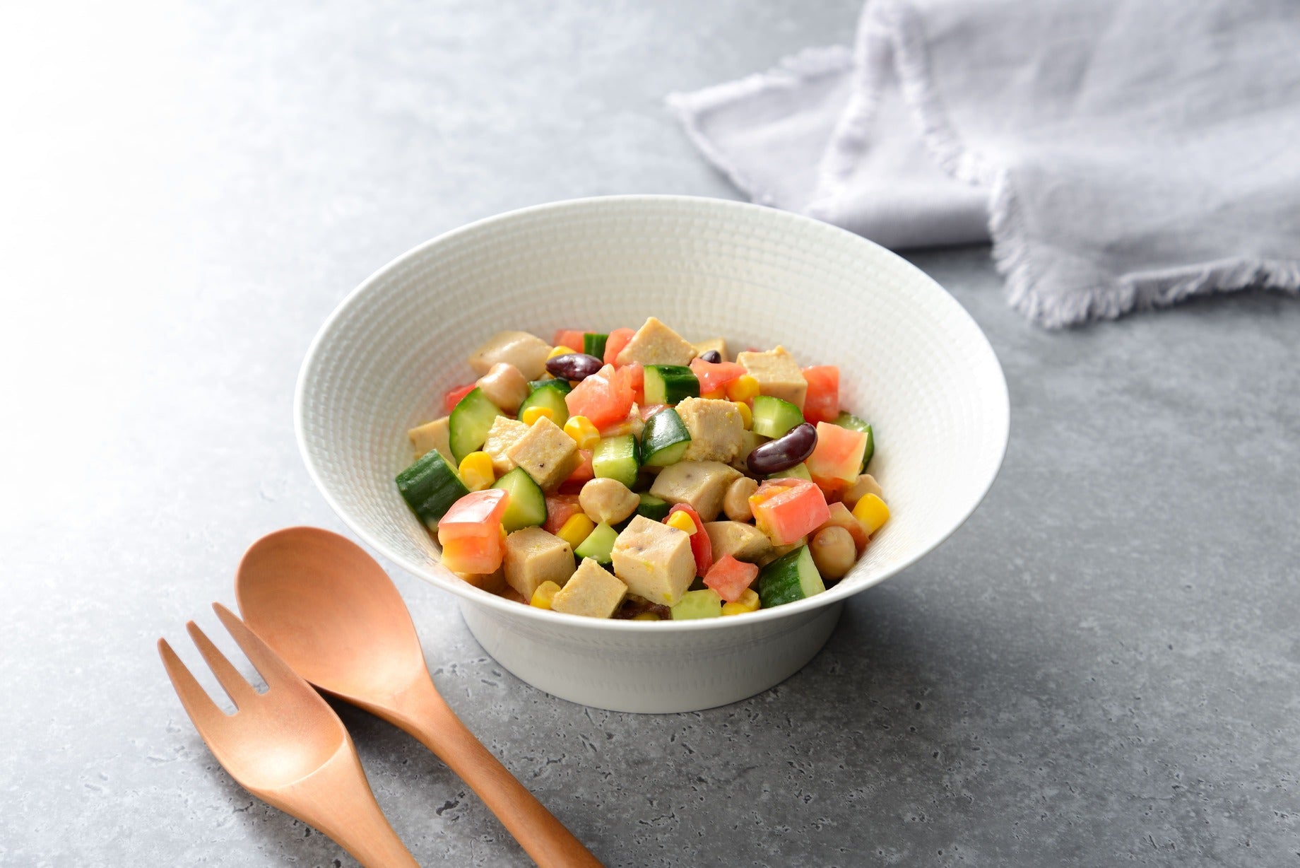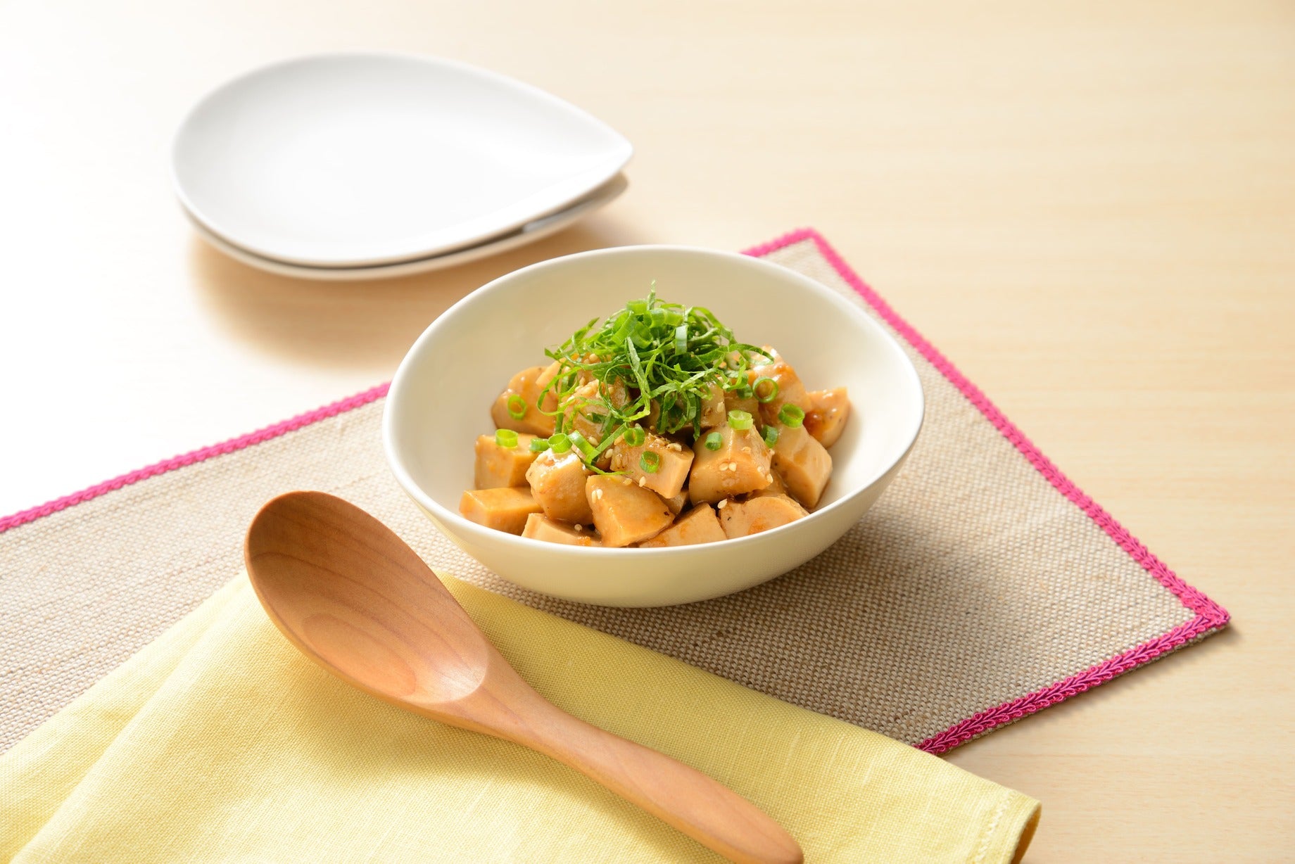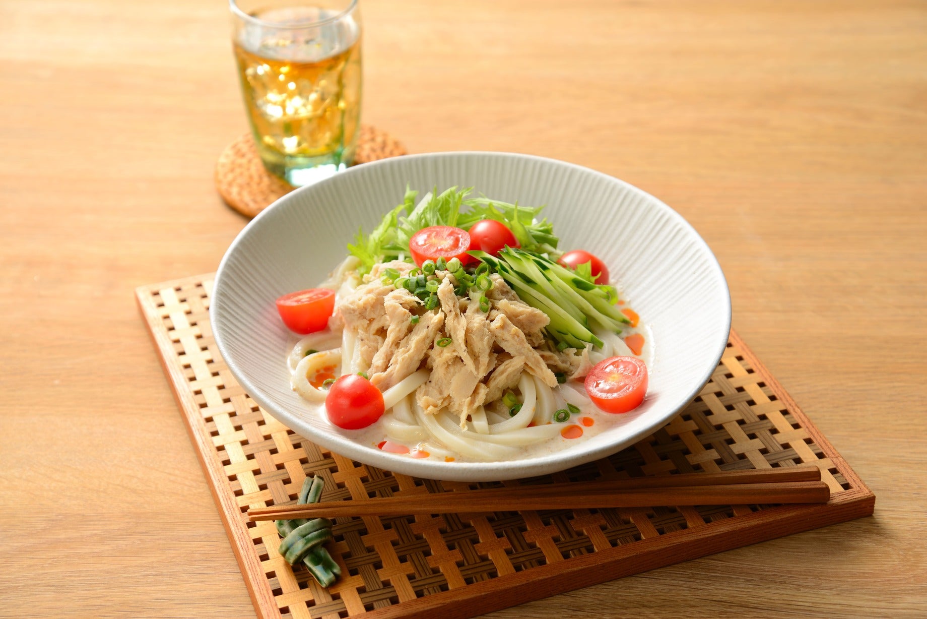 豆乳でまろやかに仕立てた坦々風サラダうどん。